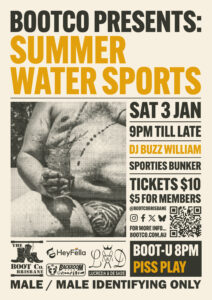 Celebrating all things hi-vis, steel cap and filthy, it’s time for Rough Trade! Join us downstairs in the bunker on Sat 2 August for a night of appreciation to our favourite sweaty macho men! As always at BootCo feel free […]